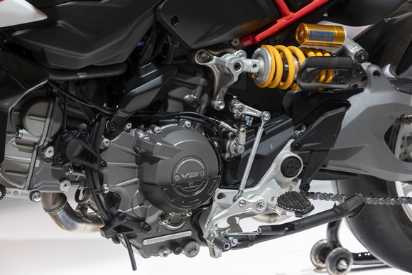 Novi V-twin obujma 890 ccm u modelima Streetfighter i Sport razvija 120 KS, u Multistradi 115 KS, a sada u Monsteru 111 KS pri 9.000 o/min. Najveći okretni moment je 91,1 Nm pri 7.250 o/min. Budući da je Monster već ionako bio lagan, u svojoj novoj iteraciji izgubio je 'tek' četiri kilograma, što je rezultiralo masom od 185 kg (spreman za vožnju). Performanse crveno-bijelog nakeda, unatoč blagom smanjenju snage, trebale bi biti savršeno adekvatne za žustre vožnje magistralnim cestama.
