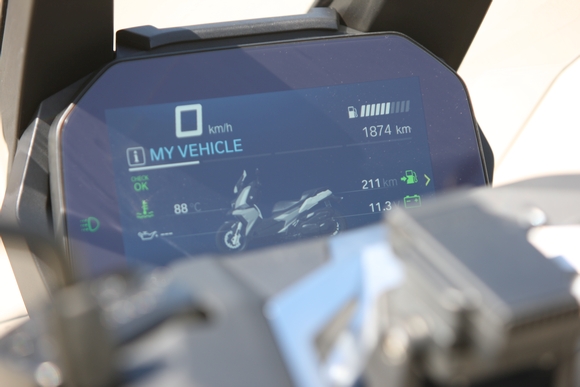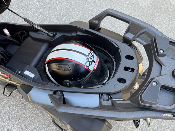 Ispod 775 mm visokog sjedala je tri litre veći pretinac čija domišljata značajka Flexcase, koja služi povećanju prostora za pohranu kacige (stane integralna veličine XL), služi za 'prikrivanje' činjenice da, zapravo, nije naročito velik. Sam položaj sjedenja je ugodan uz mali oslonac za vozačeva leđa, no primjetna je nešto manja količina prostora za noge, kao i nemogućnost njihova ugodnog protezanja, u odnosu na osjetno udobniju GT varijantu.
