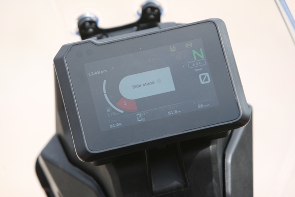 Ergonomija je karakteristično agresivna. Vozač je izuzetno blizu širokog upravljača, a time i prednjeg kotača. Međutim, zahvaljujući uspravnom držanju i opuštenom kutu svijanja koljena, Adventure R je prilično ugodan u vožnji. Ogromno vjetrobransko staklo i veliki štitnici za ruke pružaju učinkovitu zaštitu od vjetra i vremenskih uvjeta, a prednje svjetlo koje izvire iz zloglasne gornje oplate sjaji prilično intenzivno. Spomenuti opsežan elektronički paket nevjerojatno je jednostavan i intuitivan za korištenje, čitljivost informacija s TFT-zaslona je dobra čak i tijekom intenzivnog sunčanog razdoblja.