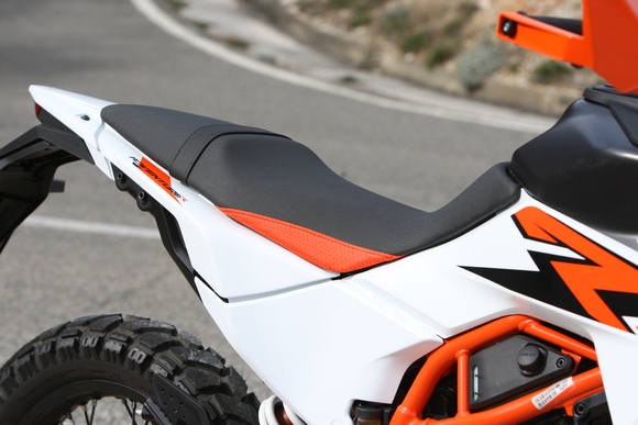 Stoga napomena – KTM 390 Adventure R je sportski, off-road orijentiran enduro sa žbičanim kotačima i grubim gumama dimenzija 90/90-21 sprijeda i 140/80-18 straga. To je pak nadopunjeno s 230 milimetara hoda ovjesa sprijeda i straga, što rezultira pozamašnom visinom sjedala od 870 milimetara. Upside-down vilica promjera 43 mm i monoamortizer dolaze iz KTM-ove sestrinske tvrtke WP Suspensiona. Prednja vilica je podesiva u kompresiji i povratu, dok stražnji amortizer nudi podešavanje povrata i prednaprezanja opruge. Dvodijelni rešetkasti okvir (stražnji dio učvršćen vijcima) izrađen je od čeličnih cijevi, dok je stražnja vilica izrađena od lijevanog aluminija. Masa motocikla sa svim tekućinama (spremnik 14 litara) iznosi impozantnih 177 kg (na granici dozvoljenog za A2-kategoriju), a ništa manje uvjerljiva nije niti nosivost od čak 198 kg.