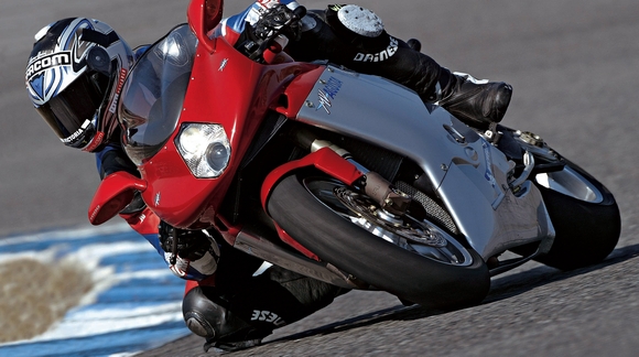 Kad se povuče završna crta, na kraju dobivate i briljantne runde na stazi. Svi testni vozači Agustu su ocijenili kao uzor stabilnosti u zavojima, a naročito joj leže brži. Probleme je stvaralo samo elektronski regulirano podizanje ler-gasa, i to pri jačim kočenjima. Taj nedostatak primoravao je vozače da u zavojima uzimaju luk putanje nešto veći od uobičajenog, ali nakon nekoliko rundi ta je kretnja potpuno usvojena. Vrlo naporna za vožnju, s pogonskim agregatom eksplozivnih karakteristika i nesređenim osjećajem za stražnji kotač u graničnim situacijama, MV Agusta njeguje poseban imidž. Što za koncepciju staru deset godina uopće nije sramotno.