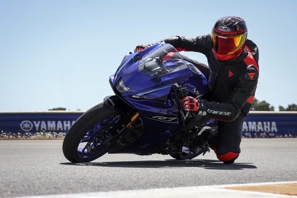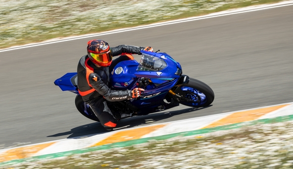 Trkalište Circuito du Sol, smješteno na samoj granici Portugala i Španjolske, je tehnički vrlo zahtjevno. Broji ukupno 18 zavoja - od kojih se barem polovica vozi na slijepo – i traži angažman u trećem, četvrtom i petom stupnju prijenosa. Anniversary modele je zamijenila izvedba u Yamahinoj trkaćoj boji Icon Blue na koju je montiran hipersportski Bridgestone Battlax RS12. Naravno, na trkalištu je odabran mod Sport, a oni koji su htjeli 'obrnuti' (trkaći) raspored stupnjeva dobili su ga nakon svega minutu prilagodbe.
